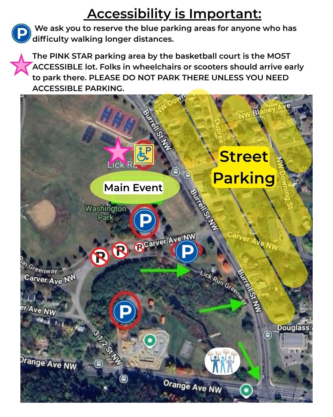 Parking is limited onsite, and we ask you to consider your mobility and accessibility needs ahead of time. Please be mindful of the many folks who have difficulty walking longer distances or need accessible parking. If you are able, we ask you to please consider the following: